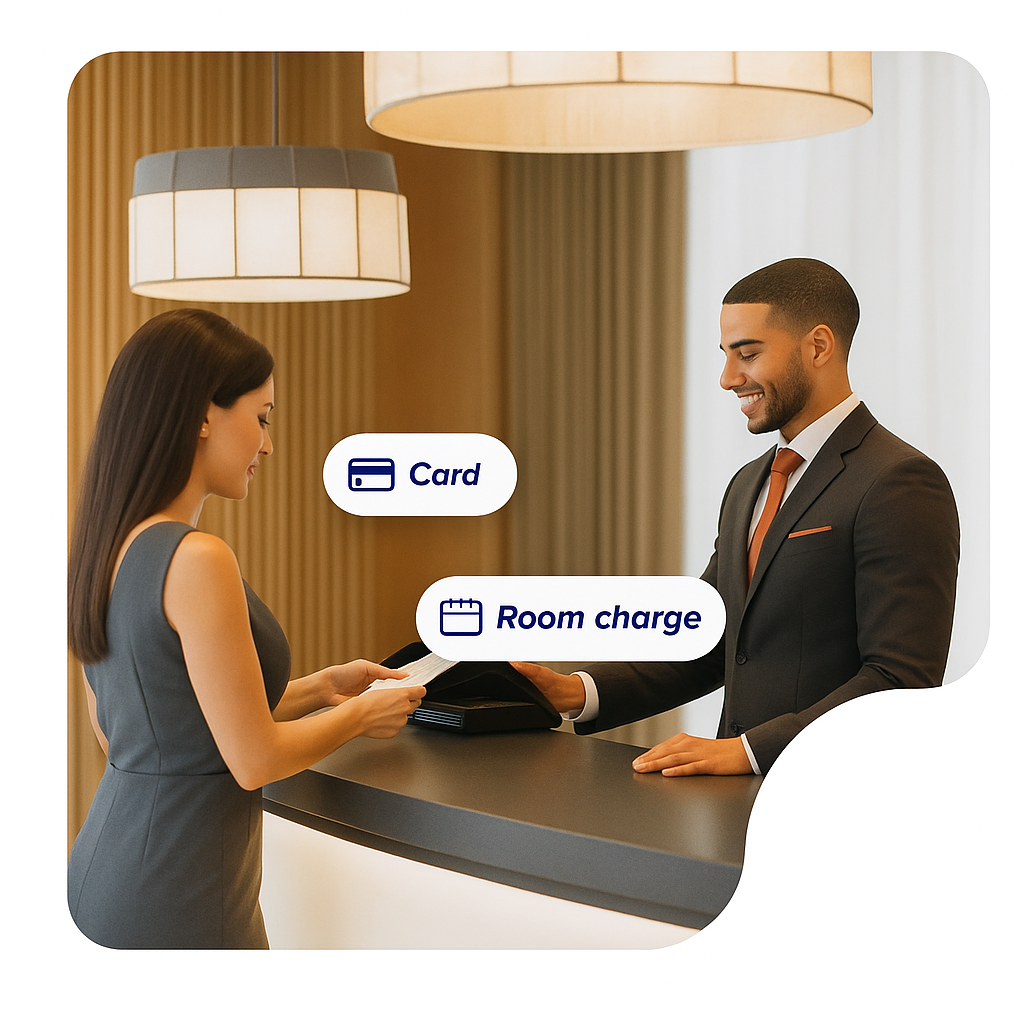 La opción de pagos cashless no solo agiliza el proceso de compra para el huésped, sino que también elimina el riesgo de contracargos en el checkout.