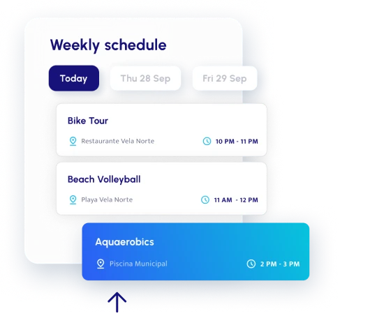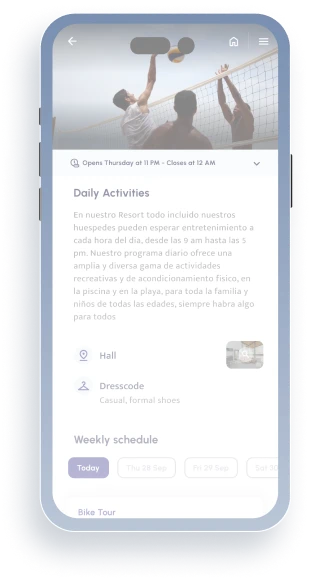 Permite que tus huéspedes disfruten de la comodidad, maximicen su tiempo y saquen el máximo provecho de su estancia al permitirles explorar todas las actividades que tienen lugar en tu hotel de un vistazo.