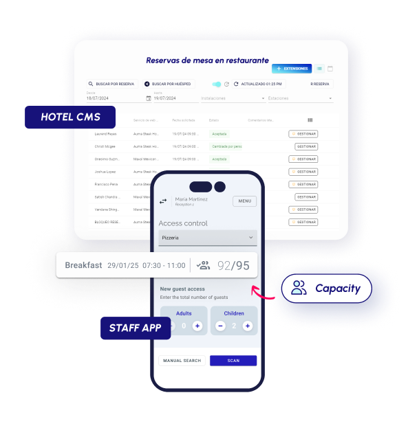 Optimize operational efficiency and improve the guest experience by allowing restaurant table reservations and activity payments autonomously and conveniently through the guest app.